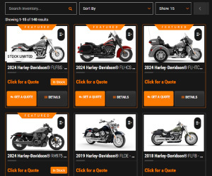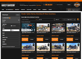 Designed explicitly for Harley-Davidson® dealers, Dealer Spike’s custom showroom includes mobile-responsive drop-down navigation that categorizes the bikes by family, make, and model. The H-D® digital showroom will be updated automatically, so dealers need not worry that their digital showroom is outdated.